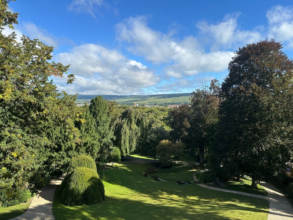 Went to Èperany France to drink and buy Champagne. It was a beautiful town with great gardens. We learned how to spot good Champagne. The Champagne house we stopped at was refurbishing a home from 1899 and it was cool to see the history in homes from then.