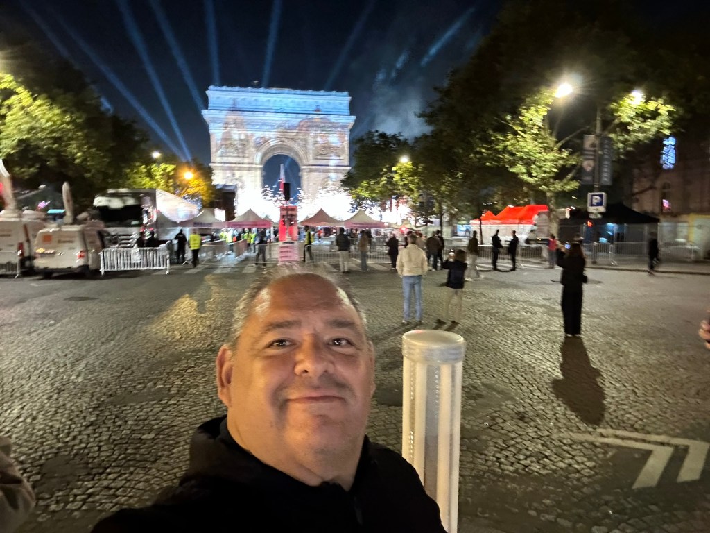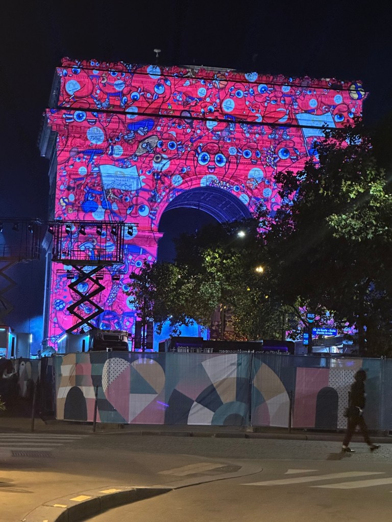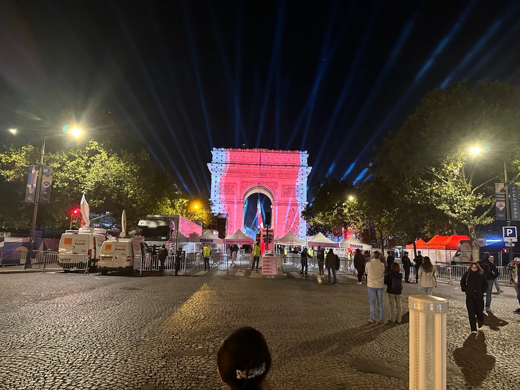The district I stayed in was cordon off for security during the Olympic volunteer concert at the Arc de Triomphe. We walked down for a few drinks to watch the projections on the arc.